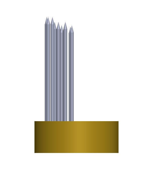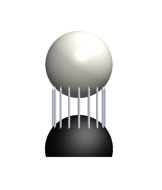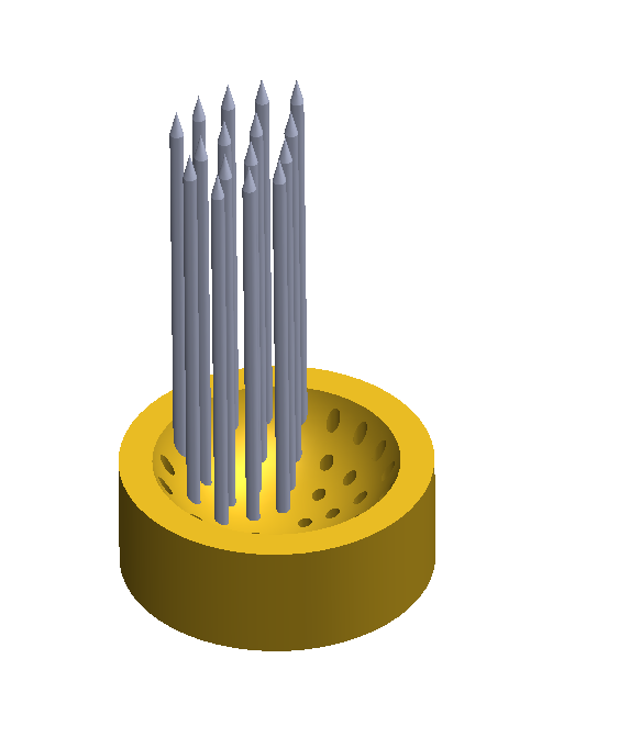 As I enter the room, the lights are off and that immediately attracts me to a warm yellow light being casted by the object on display. As I lay my first glance on this work, I am pulled in by the glow and question the light emitting mechanism, as I see the light radiating uniquely. I take a moment to refresh my mind of the title and the materials list. “Surface Tension,” constructed with 3D Printed PLA, Spray Paint, 9" Steel Nails, Electronics, and a powered Arduino.